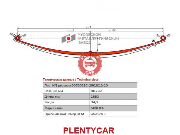 - ЧМЗ - 903202SC290210110 - Лист рессоры передней Scania 3s/4s №1