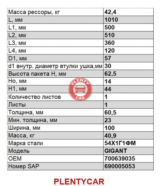 - `1006001GTZ - Полурессора Gigant 1х60 500/505 К=40 B=100 - ЧМЗ