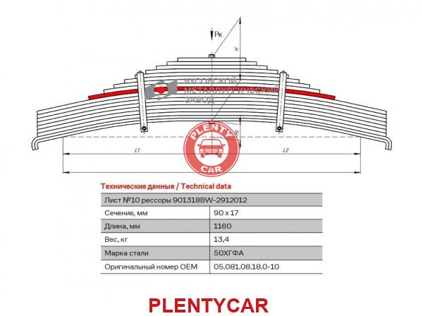 - ЧМЗ - 901318BW-2912110 - Лист №10 Рессора задняя для BPW 18 листов