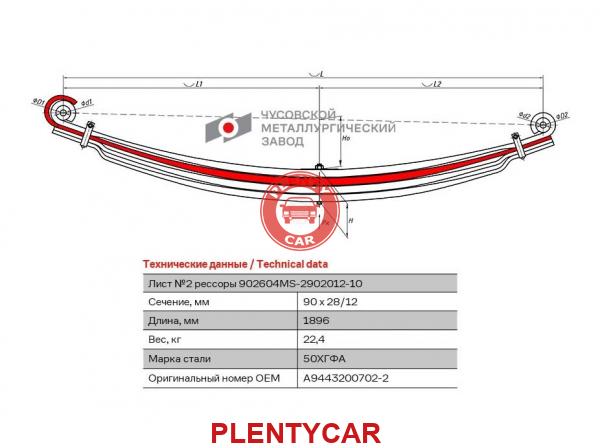 - ЧМЗ - 902604MS-2902102 - 2 лист передний мерседес ACTROS Мл.